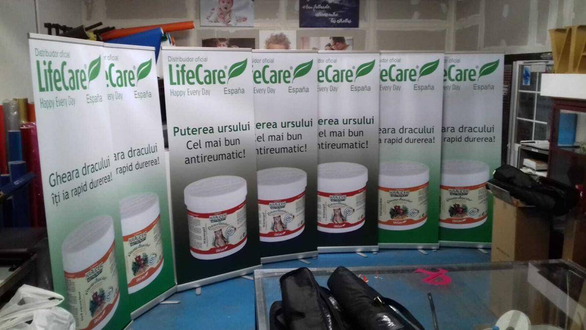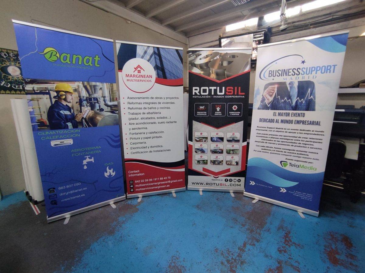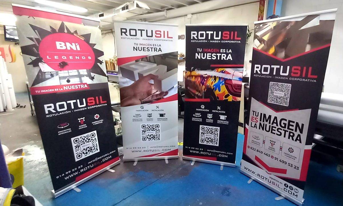 El Roll-Up es una gráfica impresa sobre un material flexible que se enrolla alrededor de un rulo y que hace que aquélla quede recogida y protegida dentro de un contenedor cuando esta cerrado el expositor display.